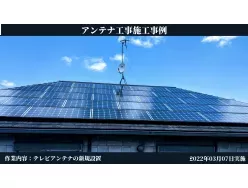 店舗兼住宅のお客様よりテレビ映りの調整のご依頼を受けました。■基本情報 住居タイプ: 店舗兼住宅 依頼内容: テレビ映りの調査 設置箇所:屋根 ■お客様のご要望 一部のチャンネルが映らず、ノイズが入ったり映りが悪かったりするため調査からおこなってほしい。 ■株式会社PMSからの提案内容 アンテナが劣化していたためうまく電波が入らなくなっており、八木式アンテナとブースターの交換をおこないました。これで快適にテレビをみていただけます。