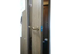 こんにちは、RSロックマンです。 今回のご依頼は、戸建て室内扉のドアが開かなくなったので解錠をご希望です。 現場にて状況を確認すると、浴室につながる内開きのドアがレバーハンドルを下げても開かない状態でした。 ドアと枠の隙間がほとんどなく、解錠工具もなかなか入らずかなりてこずりましたが、試行錯誤を繰返し何とか無事に解錠できました。 ドアも古いので交換するか検討するとの事で、今回は解錠のみで作業は完了。 ラッチと受け口にテープを貼り、鍵がかからないように作業しました。