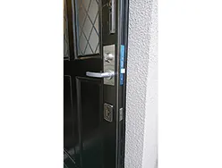 玄関ドアのレバーハンドル修理を行いました今回のご依頼は、「玄関ドアのレバーハンドルが下がったまま戻らなくなった」との事で修理をご希望でした。 取り付けられていた玄関ドアは、三和シヤッター様のグランドールと言う名称で、錠前はすでに廃盤商品になっていました。 作業内容としてはドアを加工して、新規に錠前を取り付けて施工させて頂く事になりました。鍵も上下同一1本で開けられるよう組み替えて作業は完了です。 鍵はかかるので急ぐ事はなかったとの事ですが、当日中に施工完了して良かったと思います。