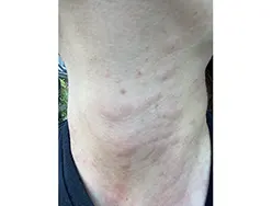 今回は草抜きを依頼され施工! いつもならちゃんと見ているのに… 見逃した!ツバキ…葉が全て食べられていて気がつかなかたった ツバキ、サザンカには毒性の強い毛虫が付きます。 木の下にも毛が落ちていたりとかなり危険な毛虫です。 この様に全身が蚊に大量に刺されたようになり痒みを伴います。 皆さん触らないように気をつけましょう〜。 私はこの後病院に…。笑